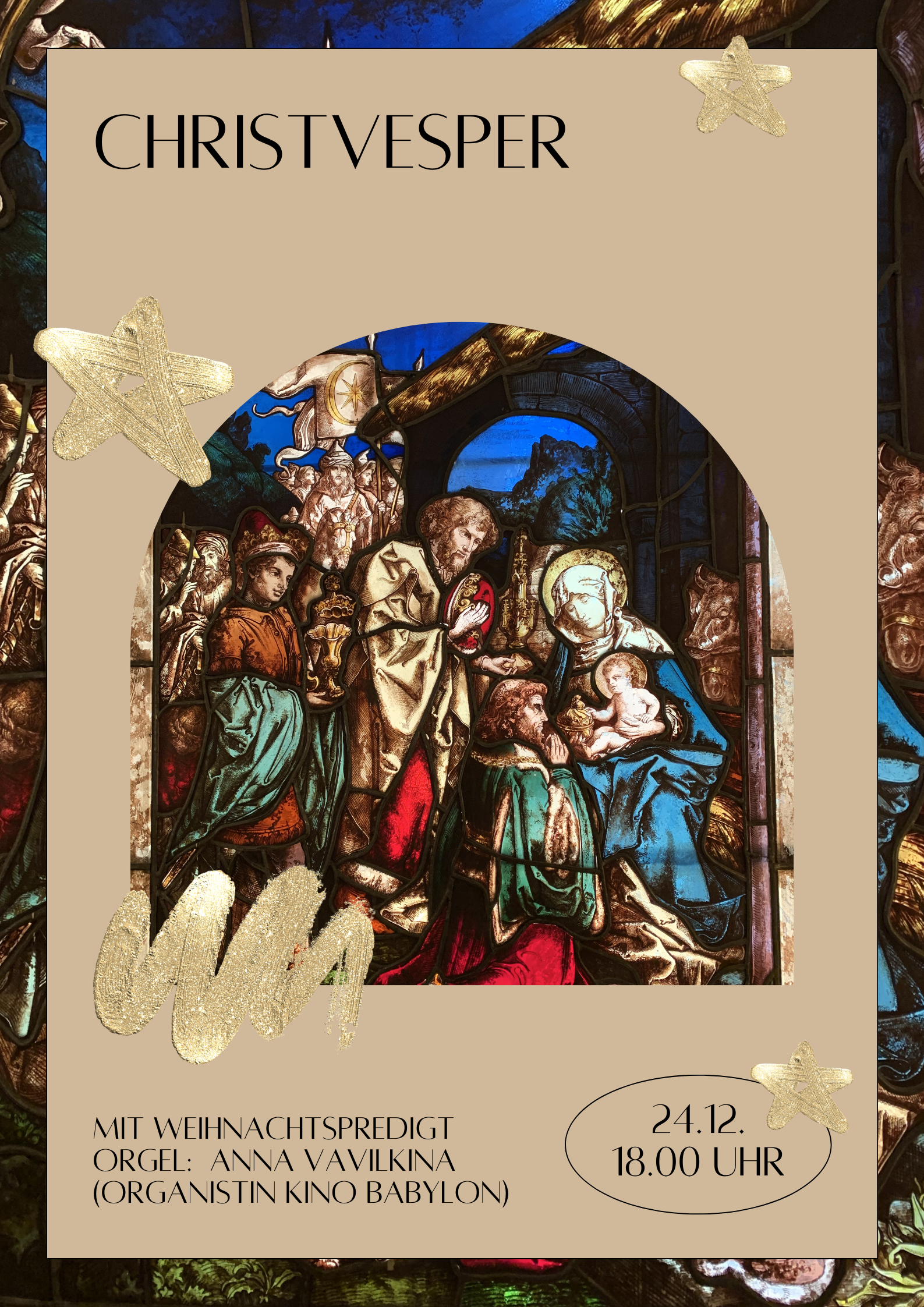 Lutherhaus Pradelstraße 11, BerlinHeiligabend Liturgie und Predigt: Pfarrer Eike Thies; Orgel: Anna Vavilkina (Organistin Kino Babylon Berlin);